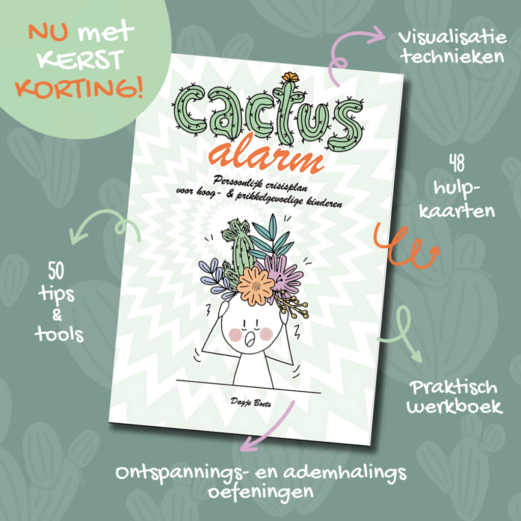 Naast mijn boek Cactusalarm heb ik een mini-boek geschreven met extra tools (32 bladzijden) die nog meer concrete handvaten bevat voor ouders, hulpverleners of leerkrachten.